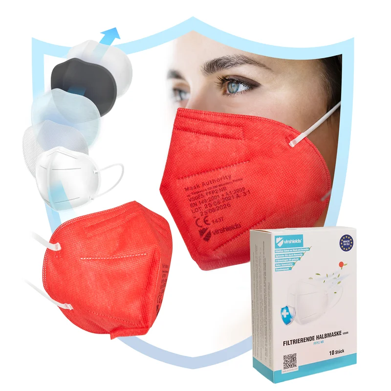 Virshields Gesichtsmaske FFP2 5-lagig rot